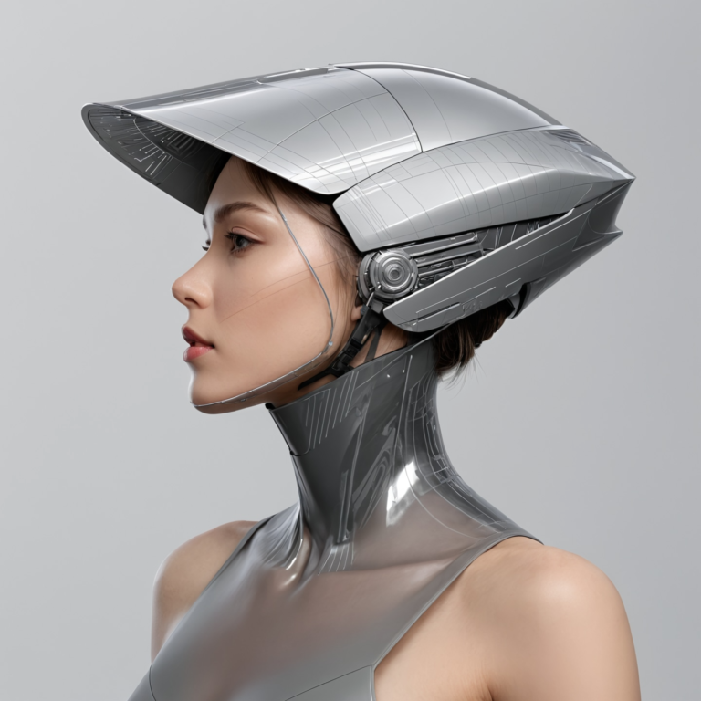 A lightweight, aerodynamic headpiece concept combining a wide sun-visor with a segmented protective shell. The design balances clean Class-A surfacing with exposed mechanical detailing at the hinge points, creating a sleek, technical silhouette that suggests modular protection, ventilation, and integrated…