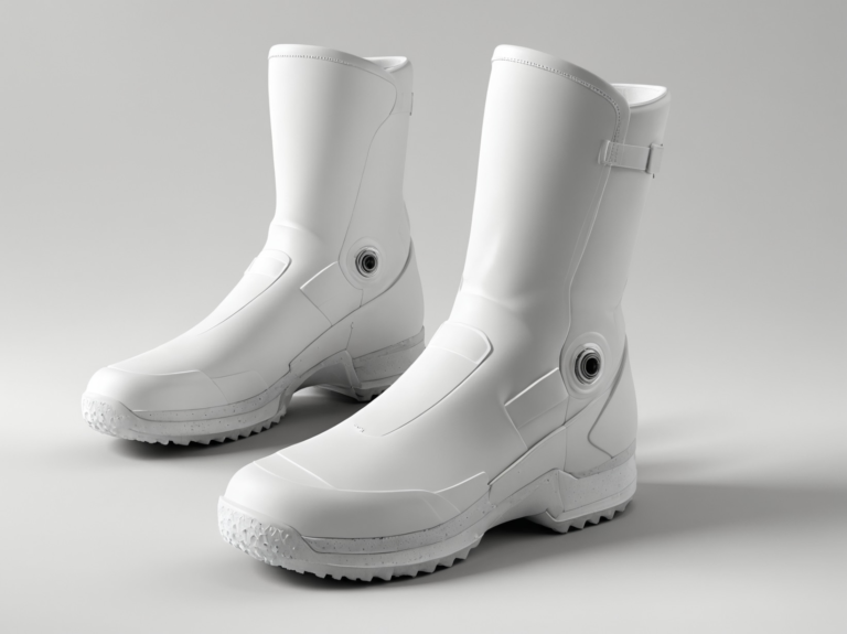 A minimalist, all-weather boot concept with a clean monolithic shell and integrated mechanical dial detail for a secure, modern fit. The design emphasises durability and protection—sealed construction, raised tooling, and an aggressive tread—paired with smooth surfacing for a premium, utilitarian…