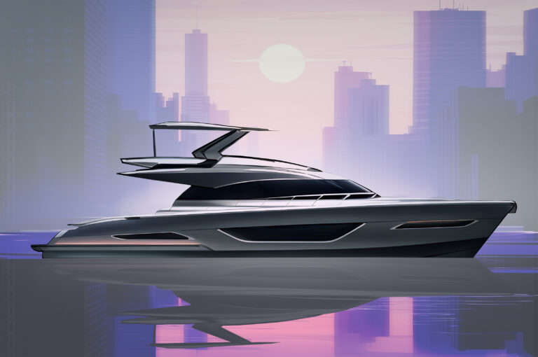 A modern sport-yacht concept defined by a strong, low-slung profile and clean, uninterrupted surfacing. The design emphasises a long waterline, integrated glazing, and sharp feature cuts to create a fast, confident stance—paired with subtle light-band detailing and a sculpted flybridge…