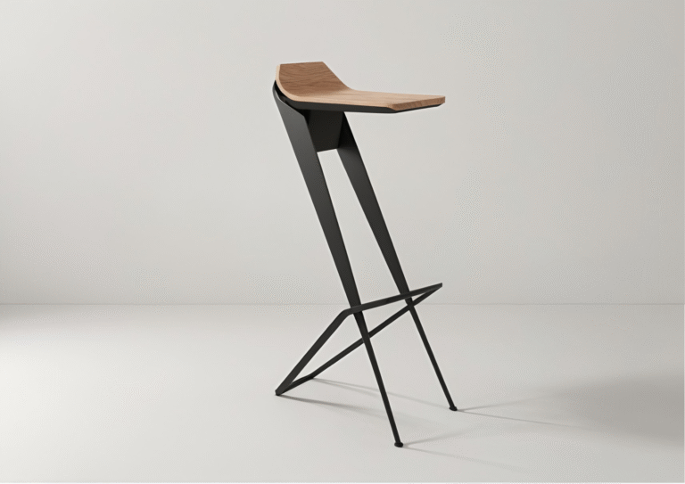 Minimal cantilever stool concept engineered for strength, comfort, and visual lightness.