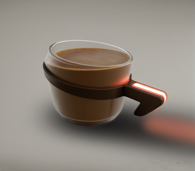 Concept coffee cup with integrated thermal feedback to show when it’s ready to drink.
