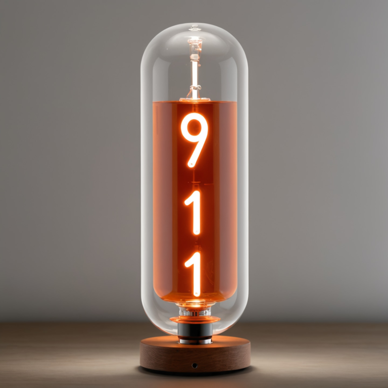 Vacuum-tube clock design exploring warm glow, legibility, and refined industrial detailing.